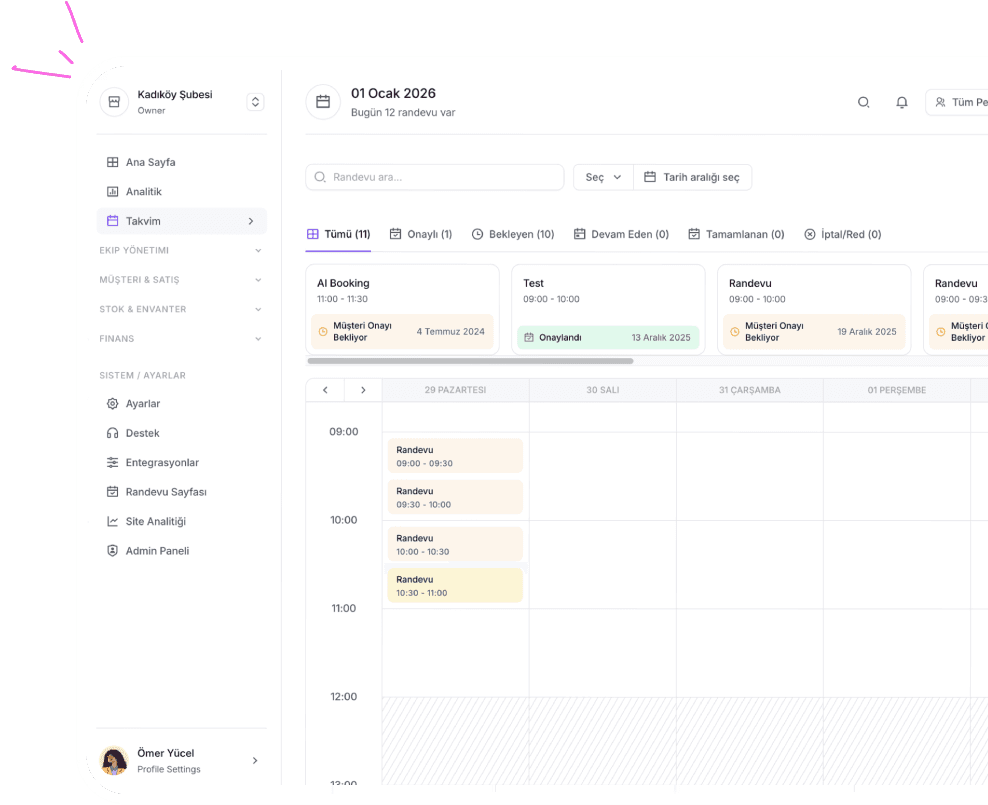 Bize UlaşınGlownity, işletmelerin randevularını, müşterilerini ve personelini tek bir platformdan yönetmelerini sağlayan kapsamlı bir randevu yönetim sistemidir.